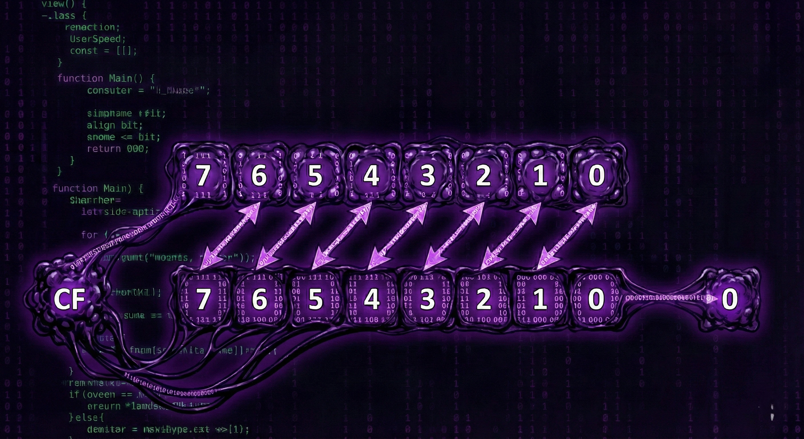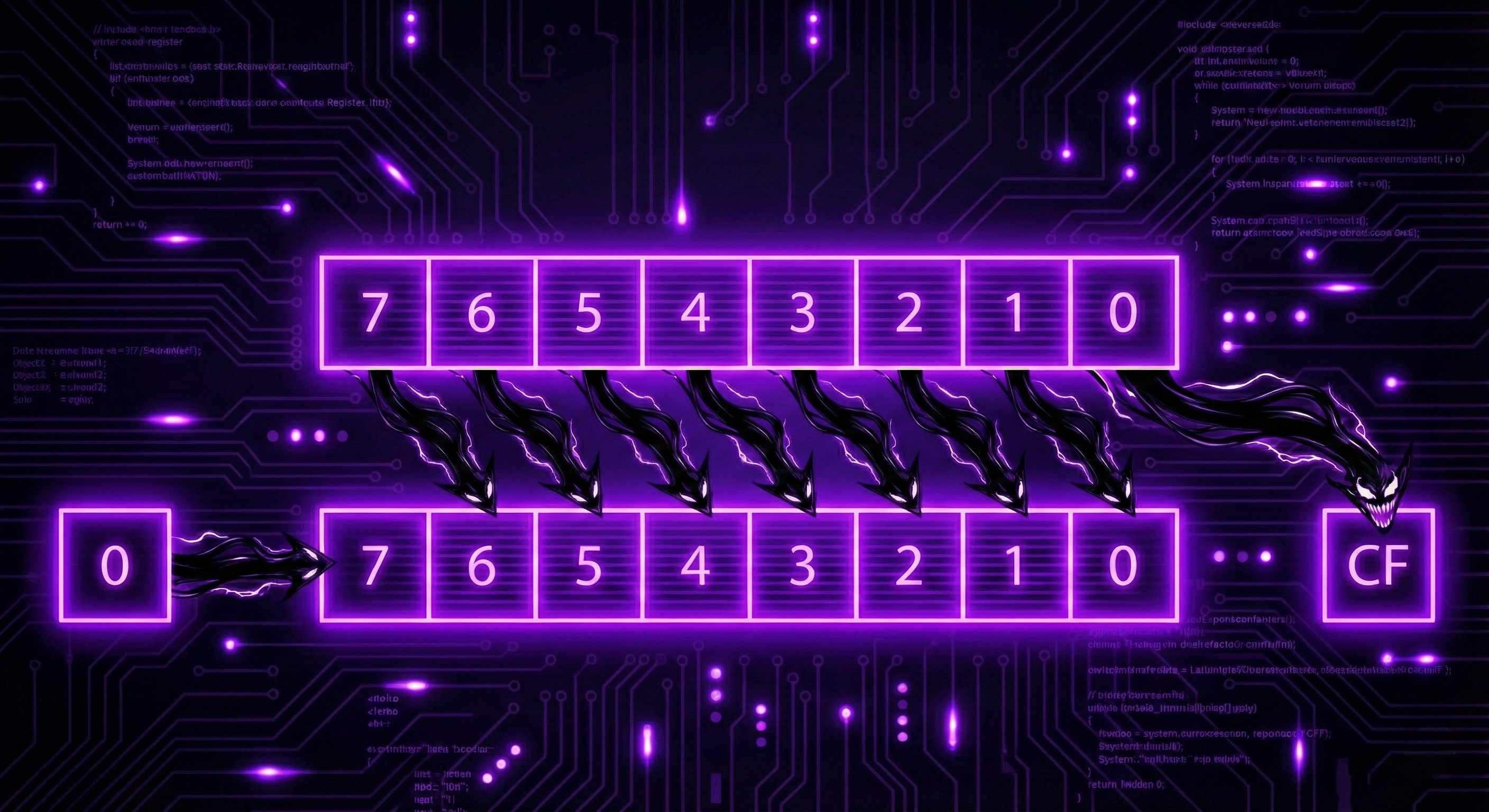 The SHR (SHift Right) instruction in this example shifts the number right by 2 bits.