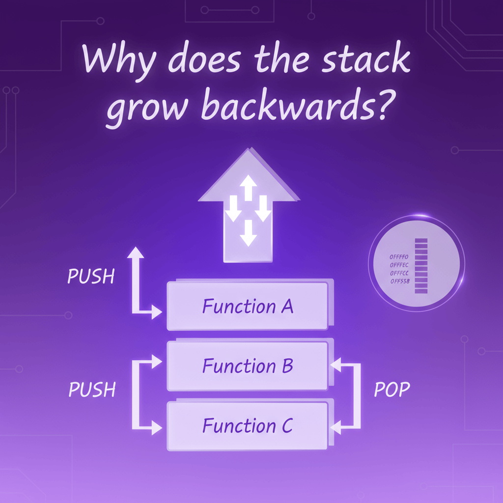 This is because the Stack grows in the opposite direction — not some deep scientific law, but it has a historical reason from the early days of computers.